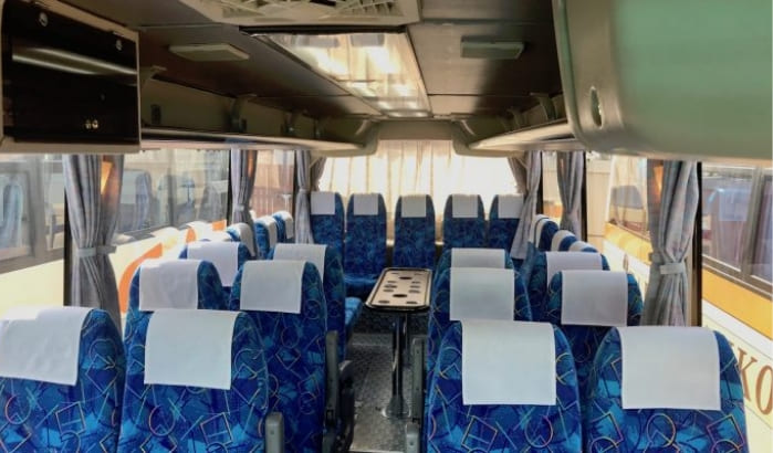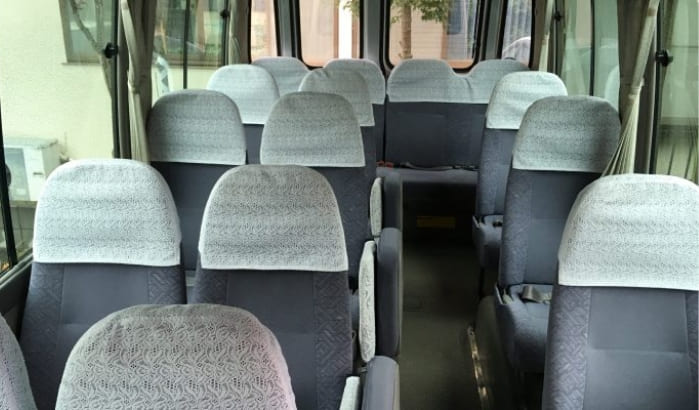 大型バス並の広いシートを使用することで、ゆったりさもアップした希少な小型観光バスです。